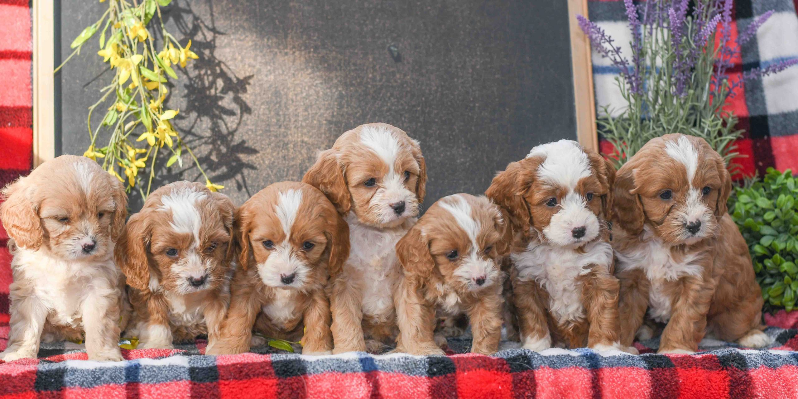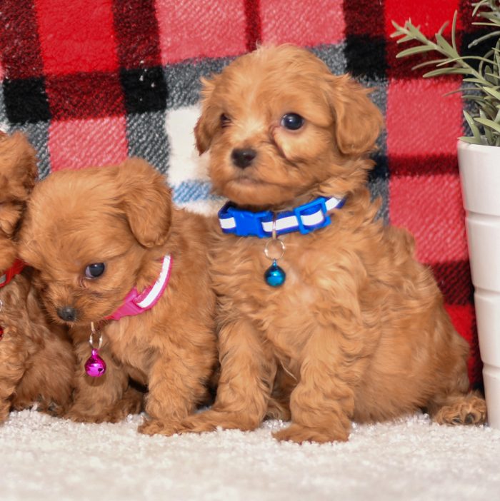 We have a waiting list for cavapoos and will give the first choice in order of deposits placed. This is a great way to get to the top of the list if you are looking for a specific color. Colors include the most famous Red & White, Red, White and Red, Black Tri and Blue Merle. Deposits are 20% and will guarantee a pup from the next litter or can be transferred to an additional litter if you are waiting for a specific color. If you have any additional questions or would like to be put on our waiting list please fill out the form on our website. You can also email us at info@allstarpuppies.com