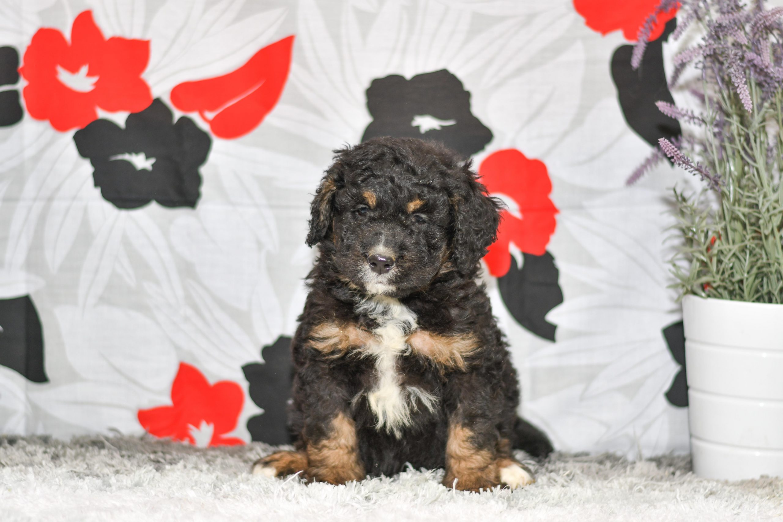 Hi my name is Thor! I’m a cuddly F1B Mini Bernedoodle puppy!